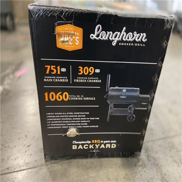 DALLAS LOCATION - OKLAHOMA JOE'S Longhorn Offset Smoker in Black with 1,060 sq. in. Cooking Space