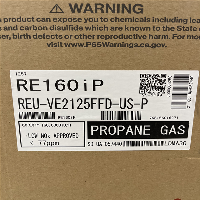 DALLAS LOCATION - Rinnai High Efficiency Non-Condensing 6.6 GPM Residential 160 000 BTU Interior Propane Gas Tankless Water Heater