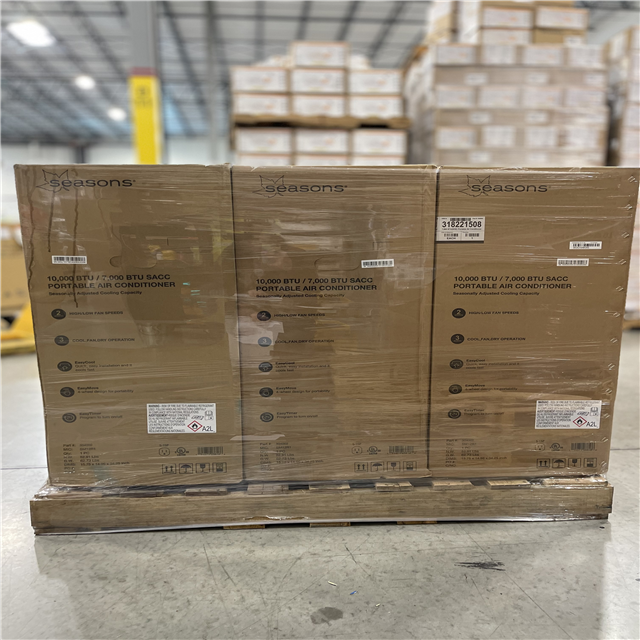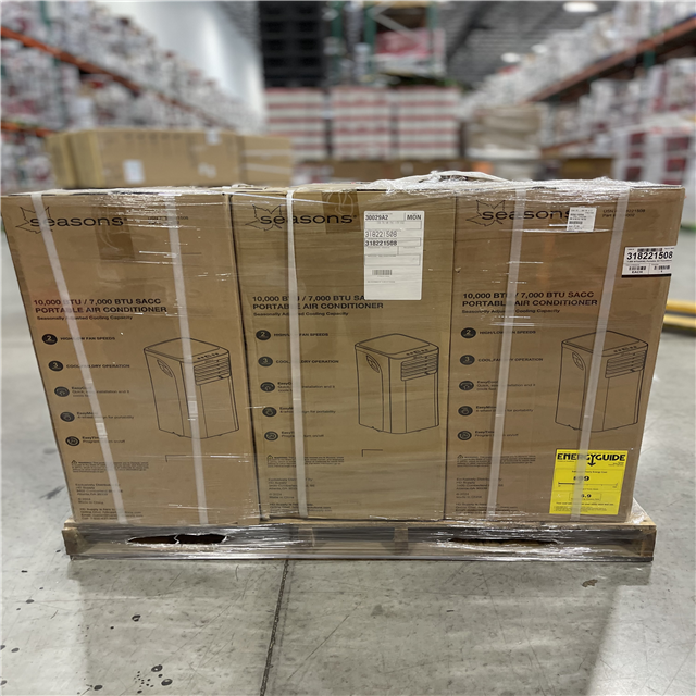DALLAS LOCATION -Seasons 10 000 Btu/7 000 BTU DOE Portable Air Conditioner PALLET-(9 UNITS)
