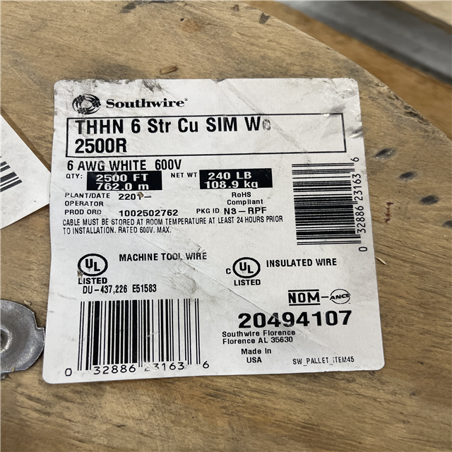 DALLAS LOCATION - Southwire 2,500 ft. 4 White Stranded CU SIMpull THHN Wire PALLET-(2 SPOOLS)(SEE NOTES)
