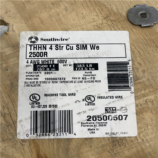 DALLAS LOCATION - Southwire 2,500 ft. 4 White Stranded CU SIMpull THHN Wire (SEE NOTES)