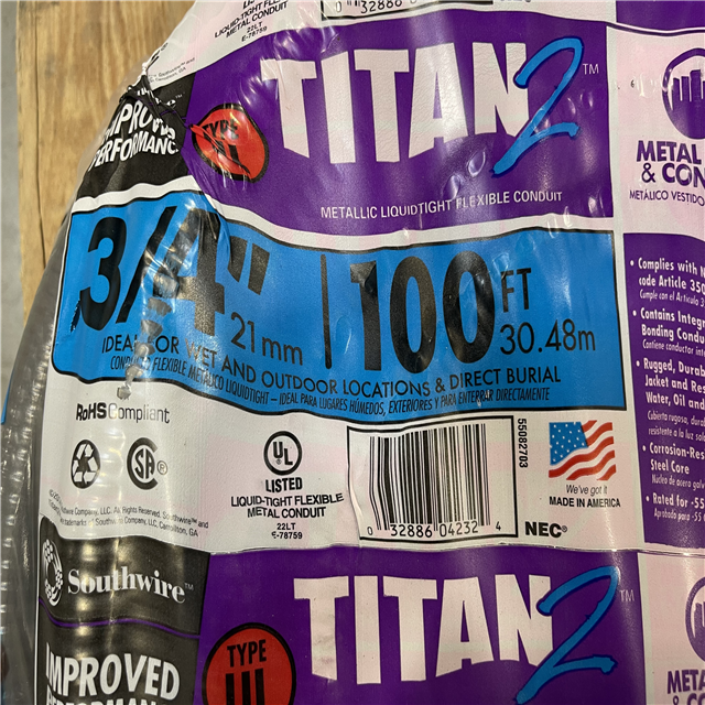 DALLAS LOCATION - Southwire 3/4 in. x 100 ft. Liquidtight Flexible Metallic Titan Steel Conduit PALLET -(4 UNITS)