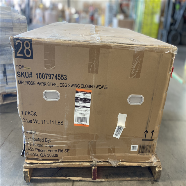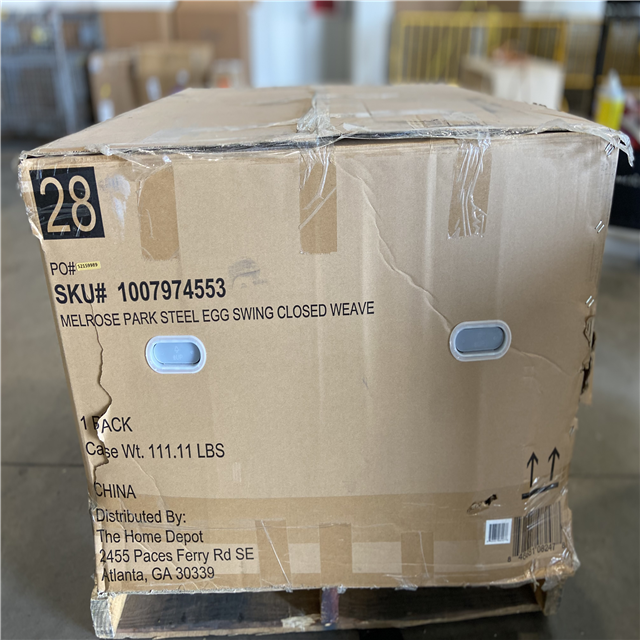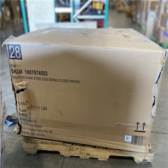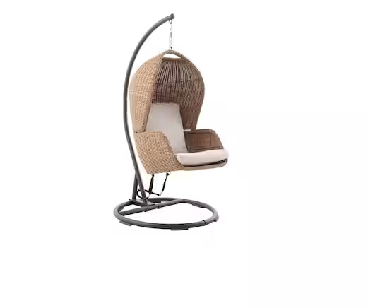 DALLAS LOCATION - StyleWell Melrose Park Closed Weave Wicker Egg-Shaped Patio Swing with Biscuit Cushions