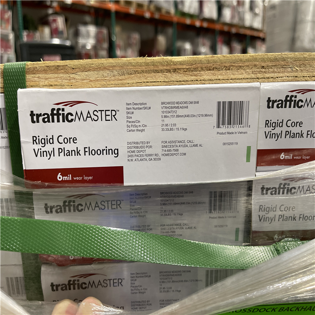 DALLAS LOCATION - TrafficMaster Birchwood Meadows Oak 6 MIL x 6 in. W x 48 in. L Waterproof Click Lock Luxury Vinyl Plank Flooring (21.95 sqft/case)PALLET-(44 CASES)