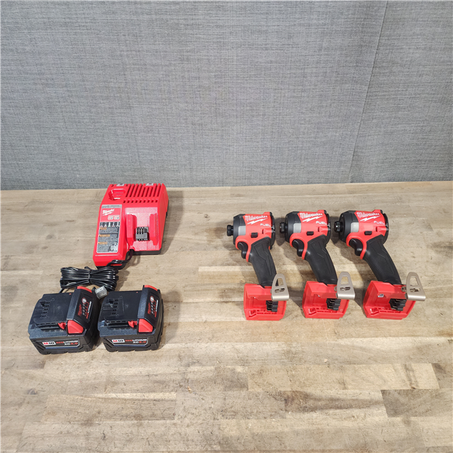 HOUSTON LOCATION - AS-IS (APPEARS LIKE NEW) (3) Milwaukee 2953-20 18V Lithium-Ion Brushless Cordless 1/4 Hex Impact Driver W/ (2) BATTERY & CHARGER