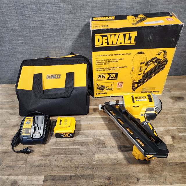 HOUSTON LOCATION - AS-IS (APPEARS LIKE NEW) DeWalt 20V MAX Brushless Cordless 2-Speed 30° Paper Collated Framing Nailer Kit