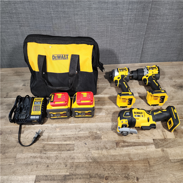 HOUSTON LOCATION - AS-IS (APPEARS LIKE NEW) DeWalt 20V MAX Lithium-Ion Cordless 3-Tool Combo Kit with (2) FLEXVOLT 6.0 Ah Batteries and Charger