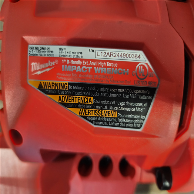 HOUSTON LOCATION - AS-IS (APPEARS LIKE NEW) Milwaukee 2869-20 M18 FUEL 18V Lithium-Ion Brushless Cordless 1 in. Impact Wrench Extended Reach D-Handle (Tool-Only)