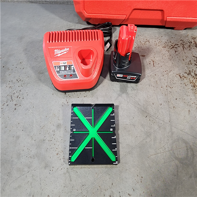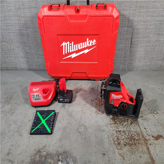 HOUSTON LOCATION - AS-IS (APPEARS LIKE NEW) Milwaukee-3632-21 M12 Green Beam Laser 360° 3-Plane Kit