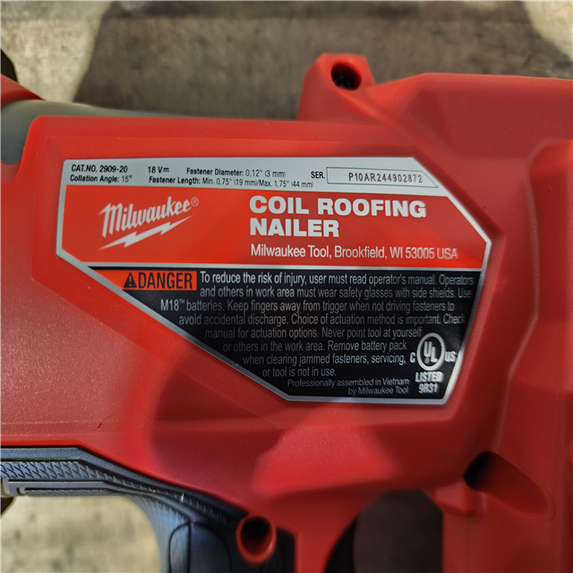 HOUSTON LOCATION - AS-IS (APPEARS LIKE NEW) Milwaukee FUEL 18-Volt Lithium-Ion Brushless Cordless Coil Roofing Nailer (Tool Only)