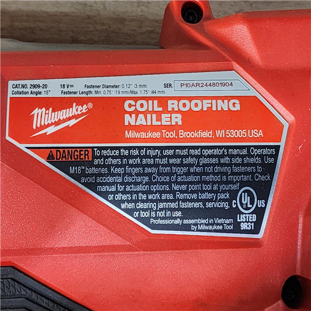 HOUSTON LOCATION - AS-IS (APPEARS LIKE NEW) Milwaukee FUEL 18-Volt Lithium-Ion Brushless Cordless Coil Roofing Nailer (Tool Only)