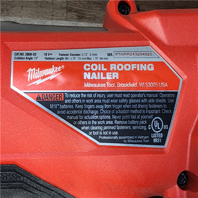 HOUSTON LOCATION - AS-IS (APPEARS LIKE NEW) Milwaukee FUEL 18-Volt Lithium-Ion Brushless Cordless Coil Roofing Nailer (Tool Only)