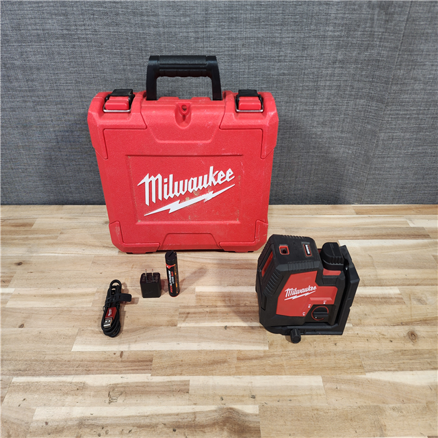 HOUSTON LOCATION - AS-IS (APPEARS LIKE NEW) Milwaukee Green 100 ft. Cross Line and Plumb Points Rechargeable Laser Level Kit