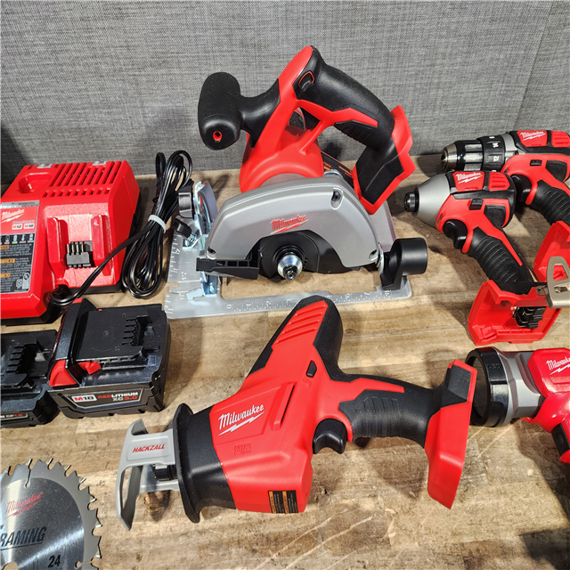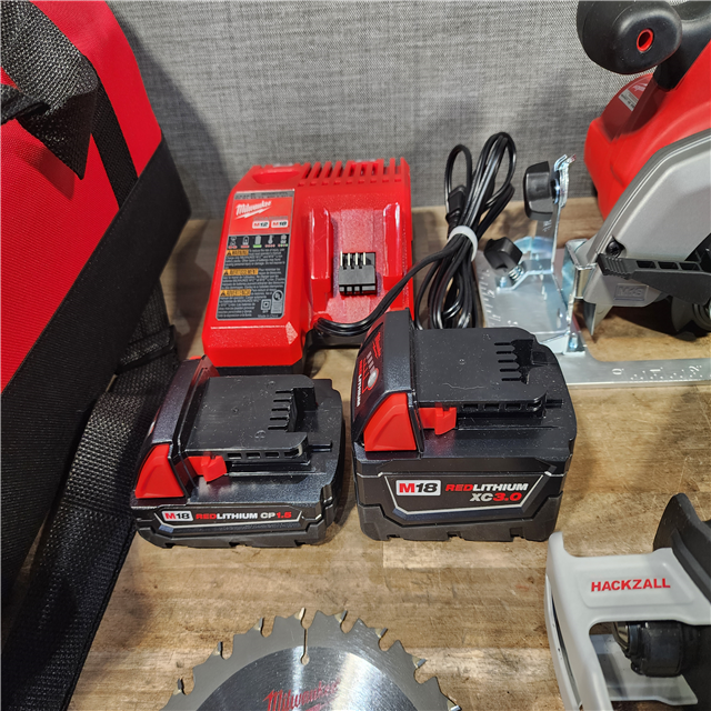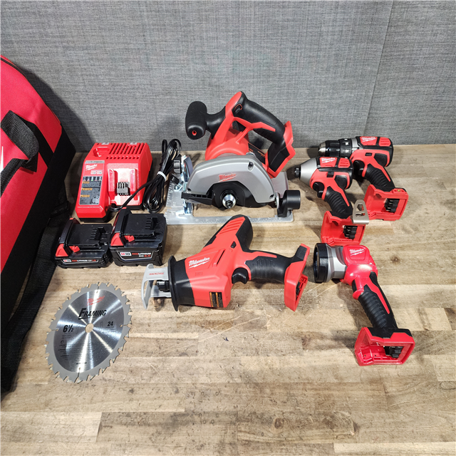 HOUSTON LOCATION - AS-IS (APPEARS LIKE NEW) Milwaukee M18 18-Volt Lithium-Ion Cordless Combo Tool Kit (5-Tool) with (1) 3.0Ah and (1) 1.5Ah Battery (1) Charger (1) Tool Bag