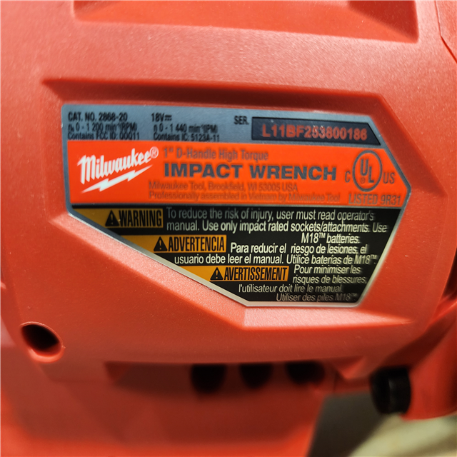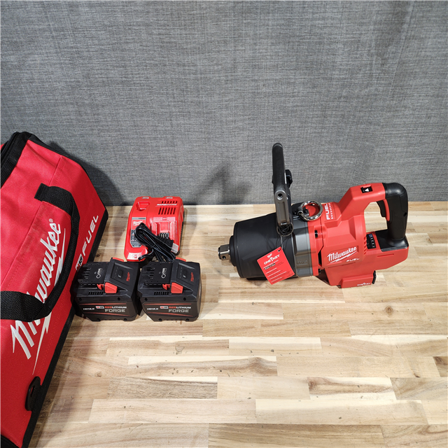 HOUSTON LOCATION - AS-IS (APPEARS LIKE NEW) Milwaukee M18 FUEL 18V Lithium-Ion Brushless Cordless 1 in. Impact Wrench with D-Handle Kit with (2) 12.0 Ah FORGE Batteries