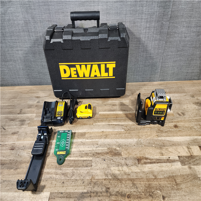 HOUSTON LOCATION - AS-IS DEWALT 12V MAX Lithium-Ion 100 ft. Green Self-Leveling 3-Beam 360 Degree Laser Level with 2.0Ah Battery Charger and Case