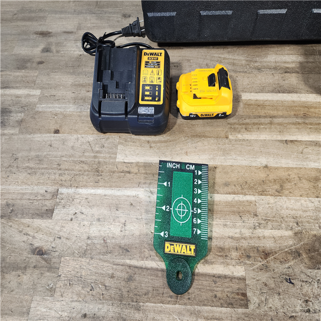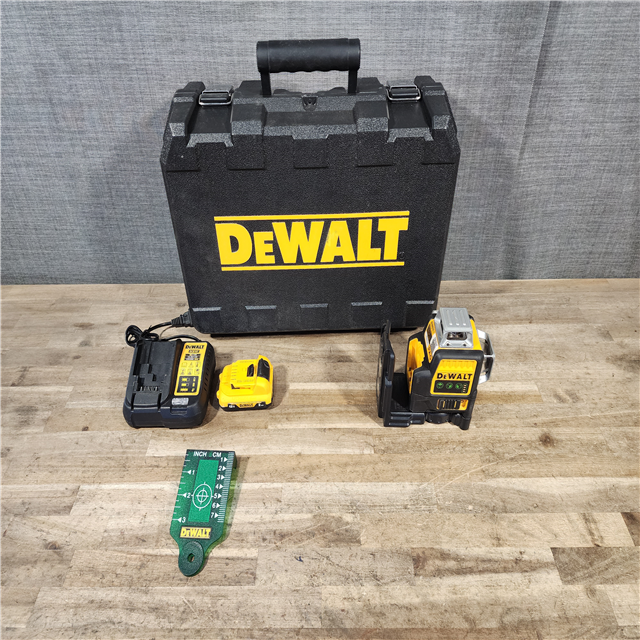 HOUSTON LOCATION - AS-IS DEWALT 12V MAX Lithium-Ion 100 ft. Green Self-Leveling 3-Beam 360 Degree Laser Level with 2.0Ah Battery Charger and Case