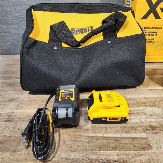 HOUSTON LOCATION - AS-IS DEWALT 20V MAX XR 16-Gauge Electric Cordless Angled Finishing Nailer Kit