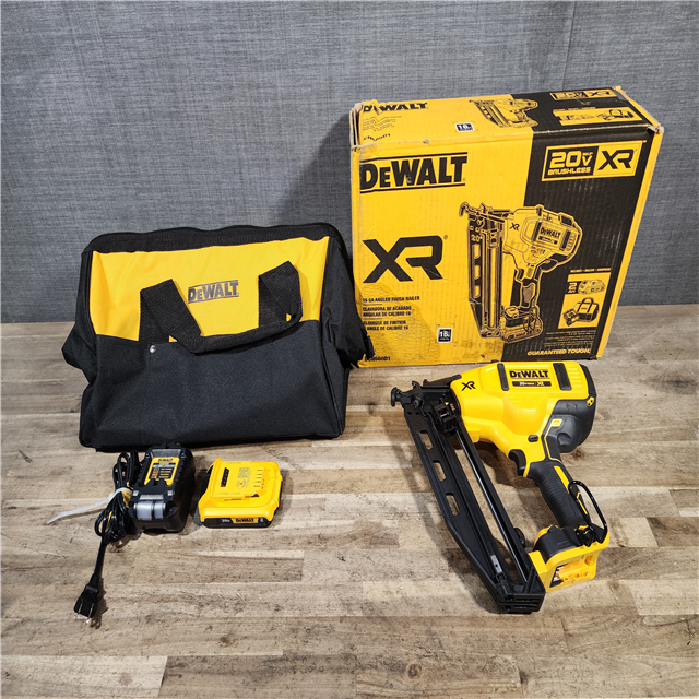 HOUSTON LOCATION - AS-IS DEWALT 20V MAX XR 16-Gauge Electric Cordless Angled Finishing Nailer Kit