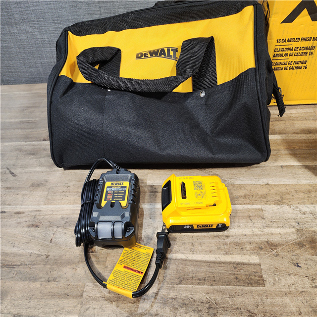HOUSTON LOCATION - AS-IS DEWALT 20V MAX XR 16-Gauge Electric Cordless Angled Finishing Nailer Kit