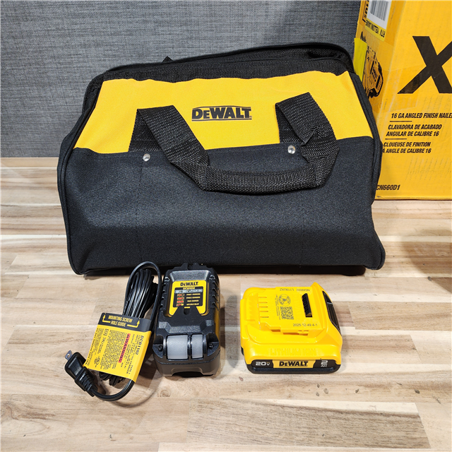HOUSTON LOCATION - AS-IS DEWALT 20V MAX XR 16-Gauge Electric Cordless Angled Finishing Nailer Kit