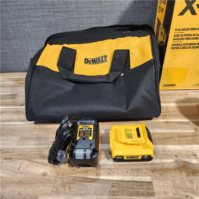 HOUSTON LOCATION - AS-IS DEWALT 20V MAX XR 16-Gauge Electric Cordless Angled Finishing Nailer Kit
