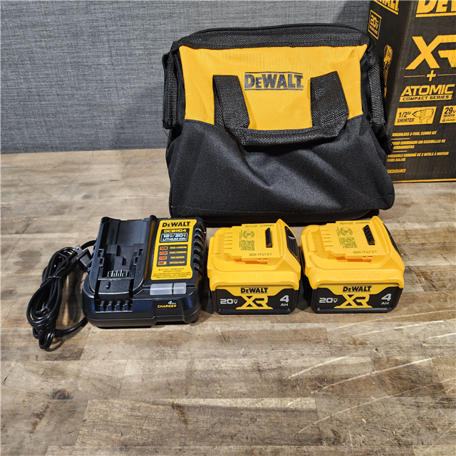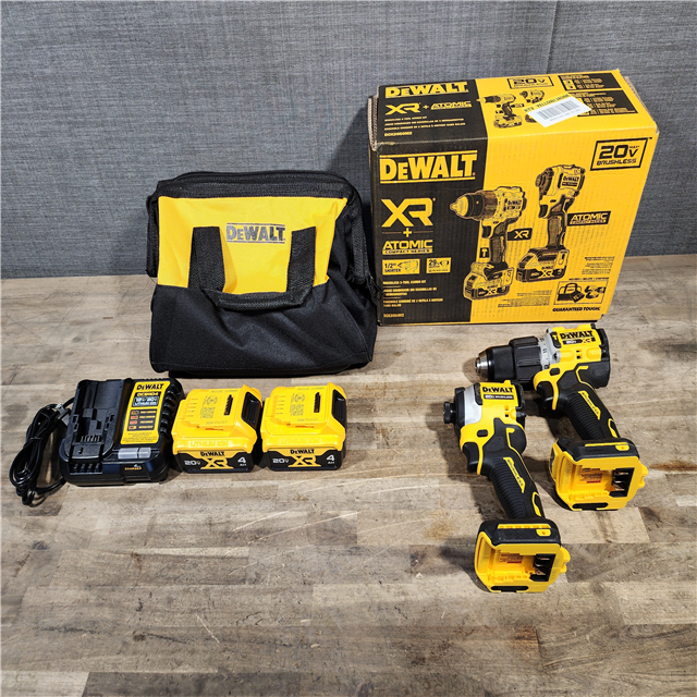 HOUSTON LOCATION - AS-IS DEWALT 20V MAX XR Hammer Drill and ATOMIC Impact Driver 2 Tool Cordless Combo Kit with (2) 4.0Ah Batteries Charger and Bag