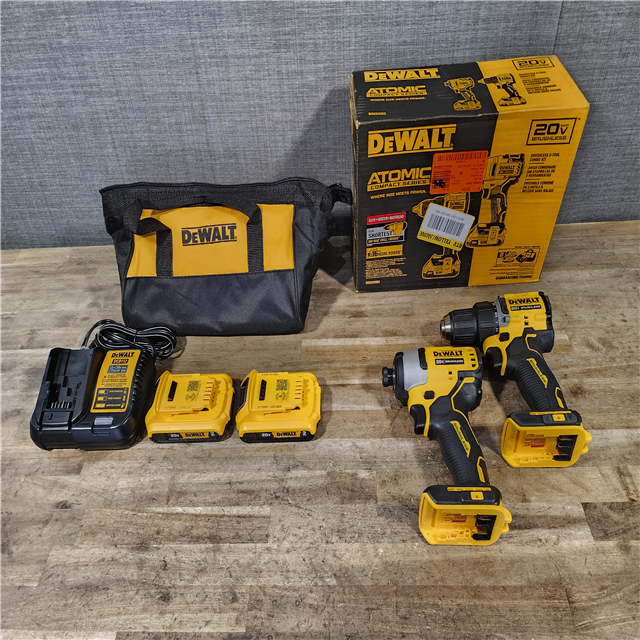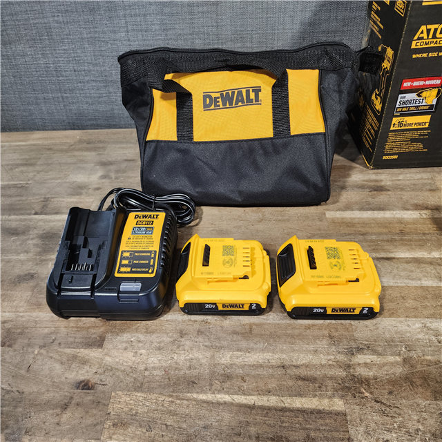 HOUSTON LOCATION - AS-IS Dewalt DCK225D2 20V MAX ATOMIC Brushless Compact Lithium-Ion 1/2 in. Cordless Drill Driver and 1/4 in. Impact Driver Combo Kit with 2 Batteries 2 Ah