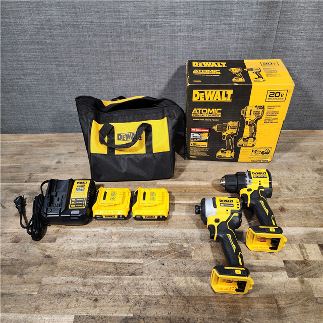 HOUSTON LOCATION - AS-IS Dewalt DCK225D2 20V MAX ATOMIC Brushless Compact Lithium-Ion 1/2 in. Cordless Drill Driver and 1/4 in. Impact Driver Combo Kit with 2 Batteries 2 Ah