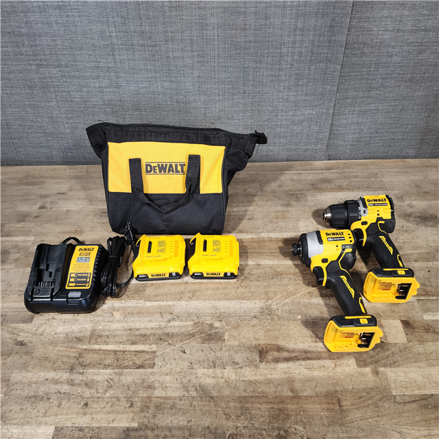 HOUSTON LOCATION - AS-IS Dewalt DCK225D2 20V MAX ATOMIC Brushless Compact Lithium-Ion 1/2 in. Cordless Drill Driver and 1/4 in. Impact Driver Combo Kit with 2 Batteries 2 Ah