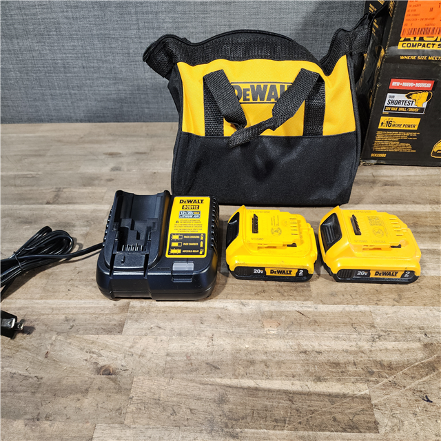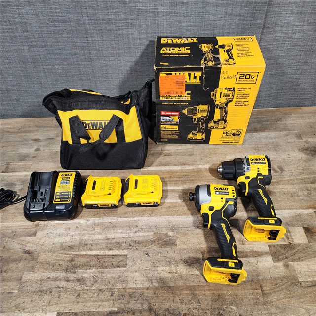 HOUSTON LOCATION - AS-IS Dewalt DCK225D2 20V MAX ATOMIC Brushless Compact Lithium-Ion 1/2 in. Cordless Drill Driver and 1/4 in. Impact Driver Combo Kit with 2 Batteries 2 Ah