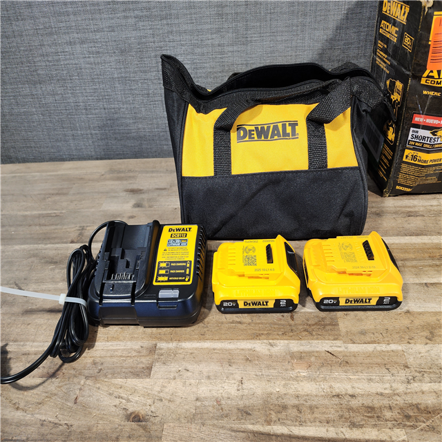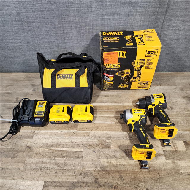 HOUSTON LOCATION - AS-IS Dewalt DCK225D2 20V MAX ATOMIC Brushless Compact Lithium-Ion 1/2 in. Cordless Drill Driver and 1/4 in. Impact Driver Combo Kit with 2 Batteries 2 Ah