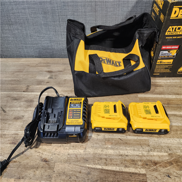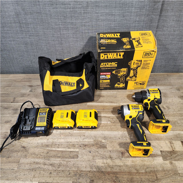 HOUSTON LOCATION - AS-IS Dewalt DCK225D2 20V MAX ATOMIC Brushless Compact Lithium-Ion 1/2 in. Cordless Drill Driver and 1/4 in. Impact Driver Combo Kit with 2 Batteries 2 Ah