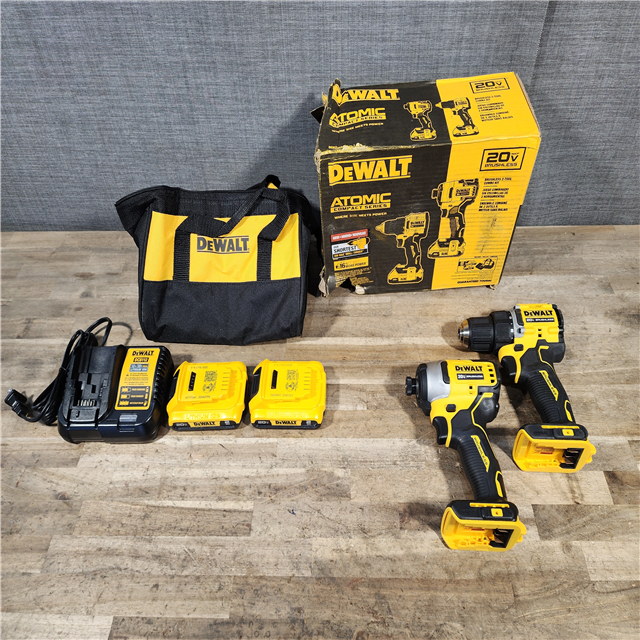 HOUSTON LOCATION - AS-IS Dewalt DCK225D2 20V MAX ATOMIC Brushless Compact Lithium-Ion 1/2 in. Cordless Drill Driver and 1/4 in. Impact Driver Combo Kit with 2 Batteries 2 Ah