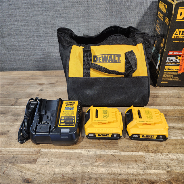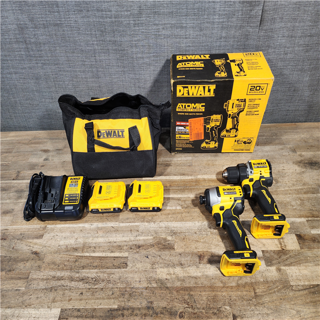 HOUSTON LOCATION - AS-IS Dewalt DCK225D2 20V MAX ATOMIC Brushless Compact Lithium-Ion 1/2 in. Cordless Drill Driver and 1/4 in. Impact Driver Combo Kit with 2 Batteries 2 Ah