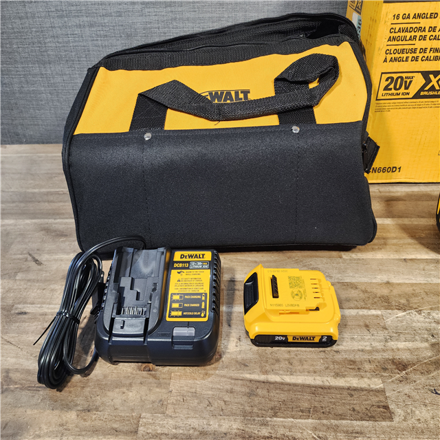 HOUSTON LOCATION - AS-IS DeWalt DCN660D1 20V 16 Gauge Cordless Angled Finish Nailer Kit W/ 2Ah Battery