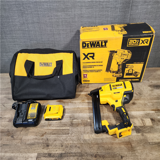 HOUSTON LOCATION - AS-IS DeWALT DCN681D1 20V MAX 18ga Cordless Brushless Narrow Crown Stapler Kit w/ BATTERY & CHARGER