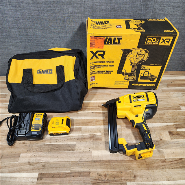 HOUSTON LOCATION - AS-IS DeWALT DCN681D1 20V MAX 18ga Cordless Brushless Narrow Crown Stapler Kit w/ BATTERY & CHARGER