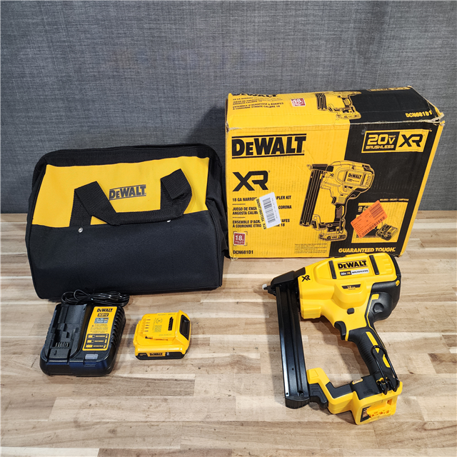 HOUSTON LOCATION - AS-IS DeWALT DCN681D1 20V MAX 18ga Cordless Brushless Narrow Crown Stapler Kit w/ BATTERY & CHARGER