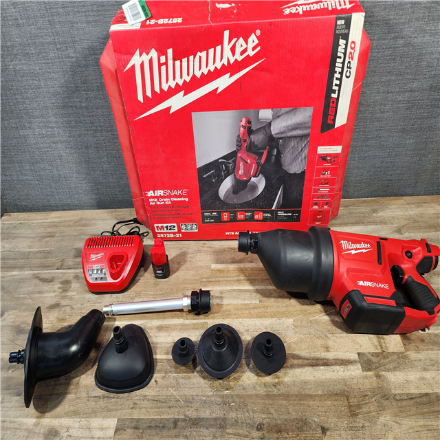 HOUSTON LOCATION - AS-IS M12 12-Volt Lithium-Ion Cordless Drain Cleaning Airsnake Air Gun Kit with (1) 2.0Ah Battery Toilet Attachments