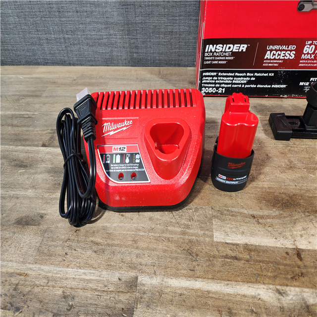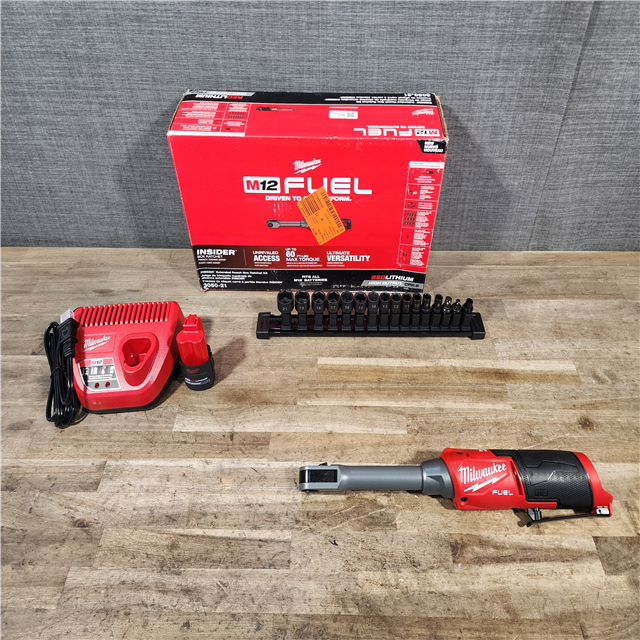 HOUSTON LOCATION - AS-IS M12 FUEL INSIDER 12V Lithium-Ion Brushless Cordless 1/4 in. - 3/8 in. Extended Reach Box Ratchet Kit W/ Battery Charger