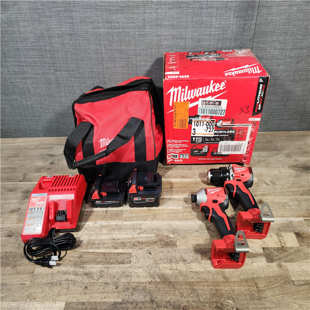 HOUSTON LOCATION - AS-IS Milwaukee M18 18V Lithium-Ion Brushless Cordless Compact Drill/Impact Combo Kit (2-Tool) W/(2) 2.0 Ah Batteries Charger & Bag