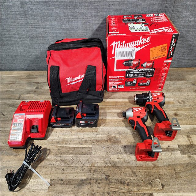HOUSTON LOCATION - AS-IS M18 18-Volt Lithium-Ion Brushless Cordless Compact Hammer Drill/Impact Combo Kit (2-Tool) with (2) Batteries Bag