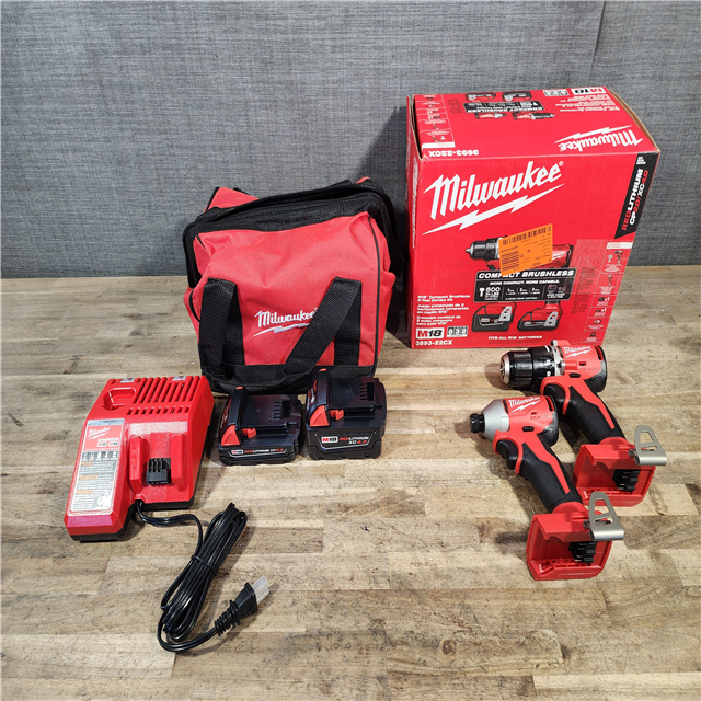 HOUSTON LOCATION - AS-IS M18 18-Volt Lithium-Ion Brushless Cordless Compact Hammer Drill/Impact Combo Kit (2-Tool) with (2) Batteries Bag