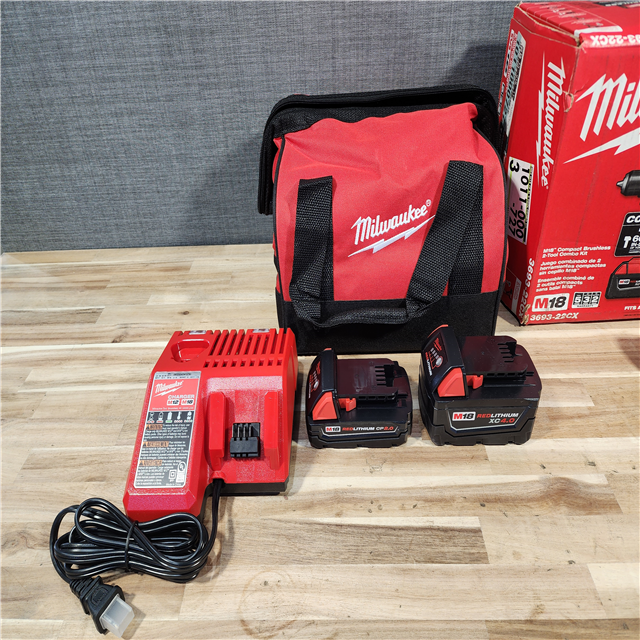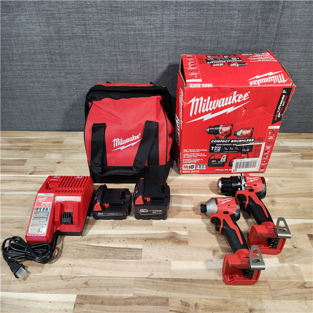 HOUSTON LOCATION - AS-IS M18 18-Volt Lithium-Ion Brushless Cordless Compact Hammer Drill/Impact Combo Kit (2-Tool) with (2) Batteries Bag