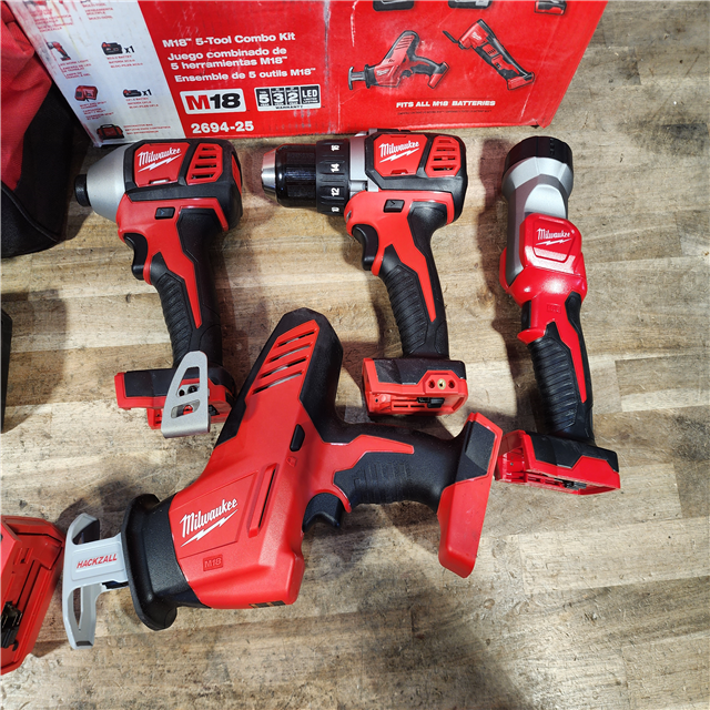 HOUSTON LOCATION - AS-IS M18 18V Lithium-Ion Cordless Combo Kit (5-Tool) with (2) Batteries, Charger and Tool Bag