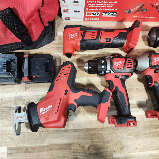 HOUSTON LOCATION - AS-IS M18 18V Lithium-Ion Cordless Combo Kit (5-Tool) with (2) Batteries Charger and Tool Bag
