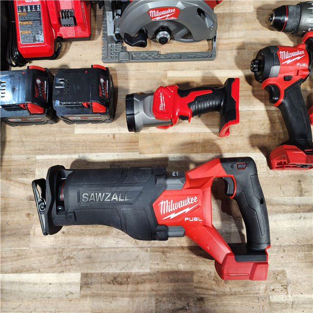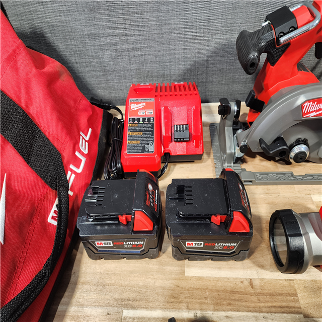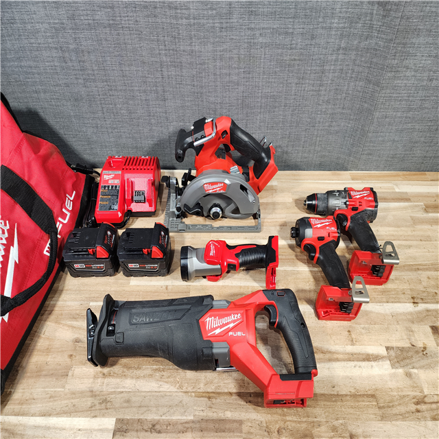 HOUSTON LOCATION - AS-IS M18 FUEL 18V Lithium-Ion Brushless Cordless Combo Kit (5-Tool) with Two 5.0 Ah Batteries 1 Charger 1 Tool Bag