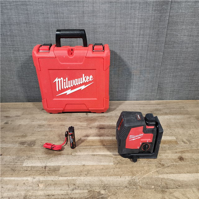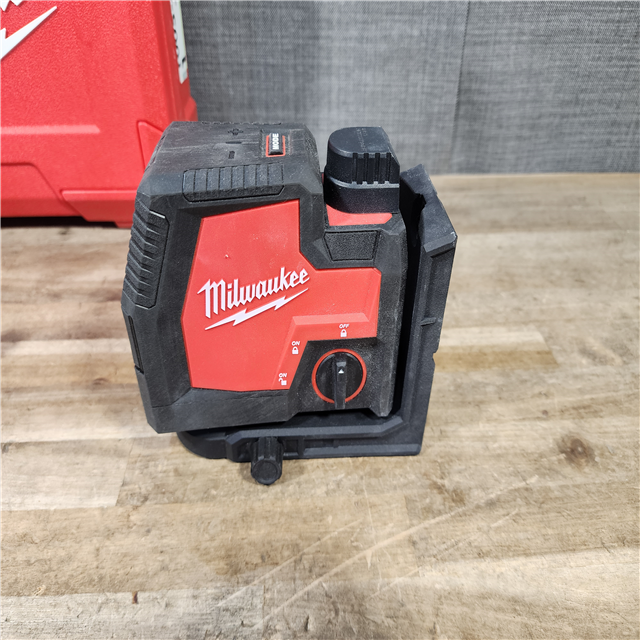 HOUSTON LOCATION - AS-IS Milwaukee 100 ft. REDLITHIUM Lithium-Ion USB Green Rechargeable Cross Line Laser Level with Charger and Alignment Target