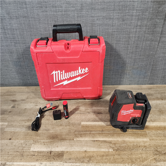 HOUSTON LOCATION - AS-IS Milwaukee 100 ft. REDLITHIUM Lithium-Ion USB Green Rechargeable Cross Line Laser Level with Charger